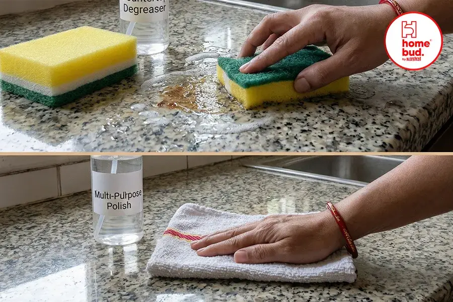 Even in a modern modular kitchen, deep cleaning once in a while keeps everything looking new.